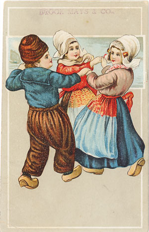 "I'll Play Santa and Give ________ A Pair of Weatherbird Shoes" Peters' Weatherbird Shoes. Copyright 1907. "The Mark of a Good Shoe, Pete's Shoe Co.'s Diamond Brand, St. Louis. Weather Birds for all the year. A set of 12 Post Cards sent on receipt of 10 cents, Stamps or Coin. Peters Shoe Co., St. Louis, U.S.A." United States and Canada one cent. Foreign Two cents.
