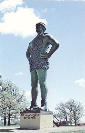 "Greetings From Blue Earth, Mn 'The land of the Jolly Green Giant' 60 ft., 8,000 lb. Green Giant welcomes you to Blue Earth." Photo Courtesty of GT. Card No. 471431, postmarked 1987.