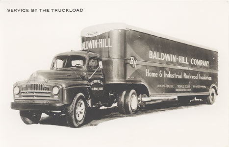 "Service by the Truckload" Baldwin-Hill Company, Home & Industrial Rockwool Insulation. Baldwin-Hill Company Trenton, N.J.- Kalamazoo, Mich. - Huntington, Ind. - Temple, Texas - Housatonic, Mass. Postmarked July 15, 1955