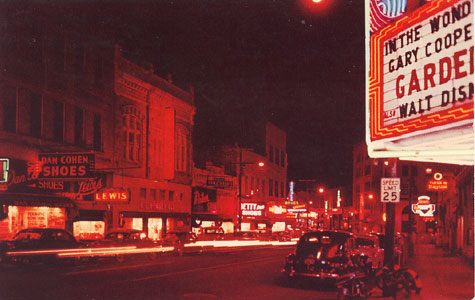 "WK-111--Looking Down Central Avenue At Night. Hot Springs National Park, Arkansas Where the World Bathes and Plays." Postmarked November 8, 1956.