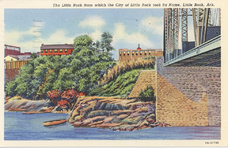 "The Little Rock from which the City of Little Rock took its Name, Little Rock, Ark." Card No. 9A-H1729, A. Karcher Candy Co. Little Rock, Ark., postmarked August 2, 1947
