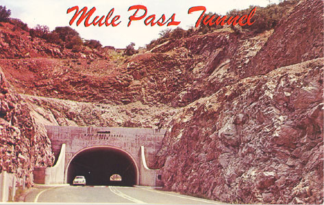"Mule Pass Tunnel, Bisbee, Arizona. This is the longest tunnel in the state. Completed in 1958." Card No. P41068, purchased October 24, 1972.