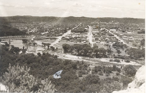 Looking West across the South Llano River toward Junction. Postmarked June 16, 1954.