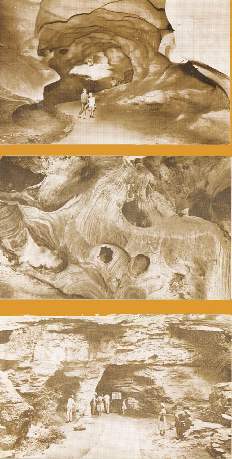 "The tribe had 'pow-wows' . . . in this 183'-long counsel room as evidenced by a wall of Indian writing. Later, Confederate gun powder was manufactured here. Another unusual, legendary point of interest in Texas Longhorn Cavern. In the heart of Texas' Highland Lakes playground. Texas Longhorn Cavern, Longhorn Cavern State Park, Burnet, Texas."