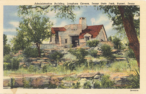 "Administration Building, Longhorn Cavern, Texas State Park, Burnet, Texas." Post Card No. 7B-H1114, ca. 1950.