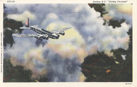 "USA-40 Boeing B-17 'Flying Fortress'." One-cent post card, postmarked October 12, 1944.