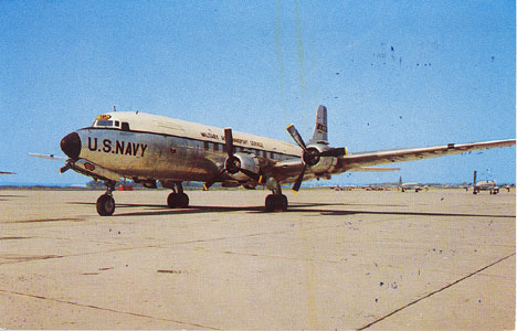 "R6D. This is the Navy Transport Aircraft of the VR-6 Squadron based at McGuire Air Force Base. The Naval Squadron plays a vital role in the MATS mission." Card No. 84593, Postmarked January 24, 1961.