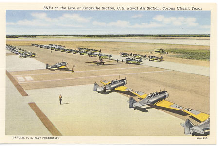 "SNJ's on the Line at Kingsville Station, U. S. Naval Air Station, Corpus Christi, Texas." Official U. S. Navy Photograph, one-cent postcard no. 3B-H490.