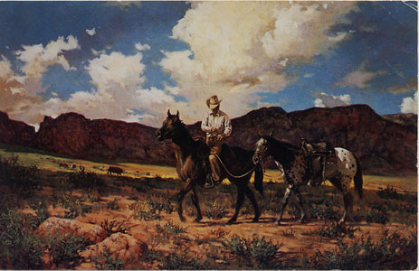 1981 postcard of "Leadin' Loose," a limited edition of 1,500 signed & numbered prints by Robert Summers, 16" by 24" image size.