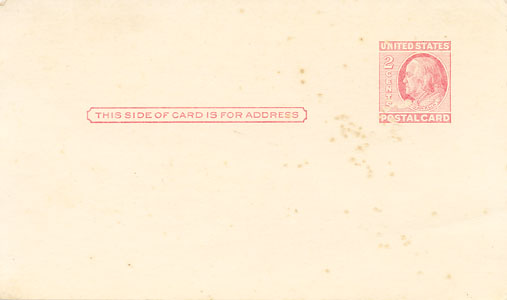Penny Postcard Revalued by P. O. Dept. to two-cents.