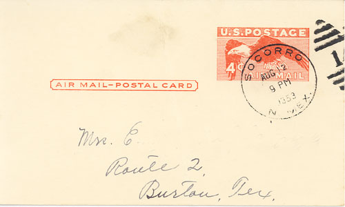 Air Mail - Postal Card. Postmarked Aug 12, 1953.
