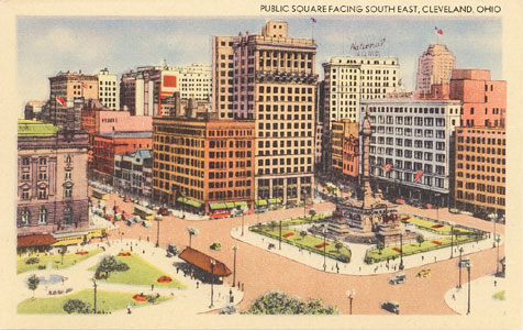 "Public Sqaure Facing Southesat, Cleveland, Ohio." Post Card No. 5499.