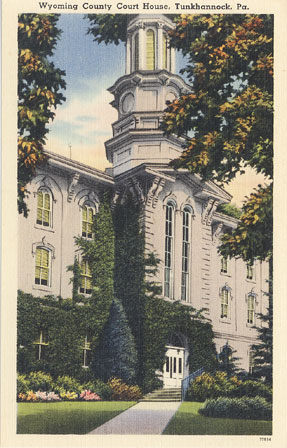 "Wyoming County Court House, Tunkhannock, Pa." One-cent Post Card No. 77814, dated August 14, 1948.