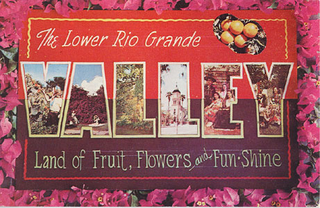 "The Lower Rio Grande Valley, Land of Fruit, Flowers and Fun-Shine" "FW-705. The Lower Rio Grande Valley of Texas is fast becoming one of the leading resort areas of the nation. Warm winters, cool summers, with plenty of fruit, flowers, and 'funshine', plus the added attraction of only 3 hours drive to fabulous and romantic Monterray, Mexico, brings vacations from far and near. Weather bureau' records, show it to be one of the coolest summer spots in Texas." Postmarked 1977.