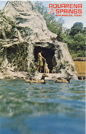 Aquarena Springs, San Marcos, Texas was home to the glass bottom boat, birds, fish, and underwater shows. It was a tranquil entertainment park and restaurant that was enjoyed for many years by people of all ages. The property and springs are now part of Texas State University. "Sitting on the sand under the shade of a palm, cooling your feet, can be a real pleasure after a day's visit at Aquarena Springs."