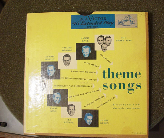Theme Songs by, The Three Suns "Twilight Time", Sammy Kaye "Kate's Melody", Vaughn Monroe "Racing with the Moon", Tommy Dorsey "I'm Getting Sentimental Over You", Wayne King "The Waltz You Saved for Me", Tex Beneke "Moonlight Serenade", Larry Green "My Promise to You".