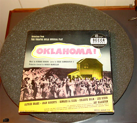 Boxed set of selections from the theater play "Oklahoma". Copyright 1949.
