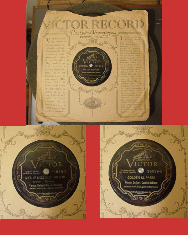 Golden Slippers and My Blue Ridge Mountain Home Vernon Dalhart - Carson Robison Victor label no. 20539-B Victor Talking Machine Co., Camden N.J., USA.