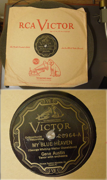 RCA Victor, Victor Talking Machine Co., Orthophonic Recording, "My Blue Heaven" by Gene Austin, Tenor with orchestra. No. 20964A