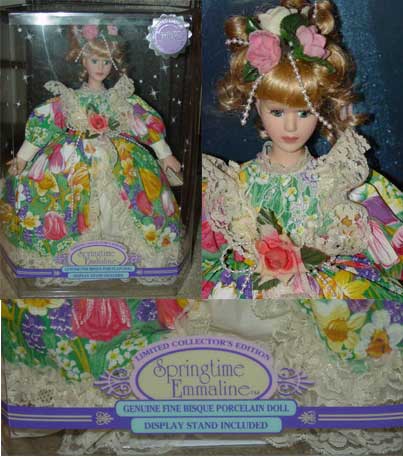 "Springtime Emmaline" by Soft Expressions, a 1997 limited edition porcelain doll sold by Eckert's Drug Stores. The doll sold for $14.99 new in the store.