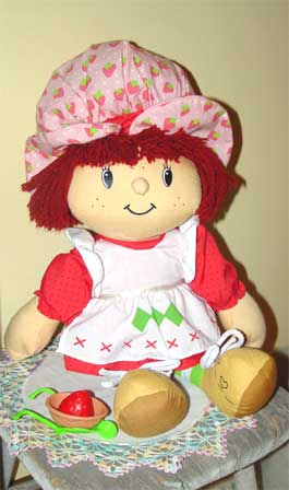 Strawberry Shortcake rag doll, tagged "Those Characters From Cleveland, 2002". She is 18" tall and is all original and scented.
