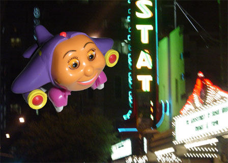 Blue plastic airplane without any markings. What a pleasant evening for flying and sight-seeing.