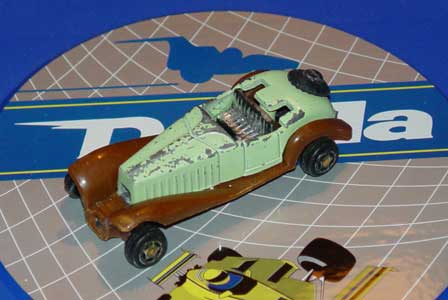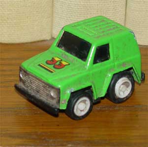 Diecast metal mini car that is not marked with a brand or date. The car needs to be washed because it was driven through the sand dunes on Padre Island.