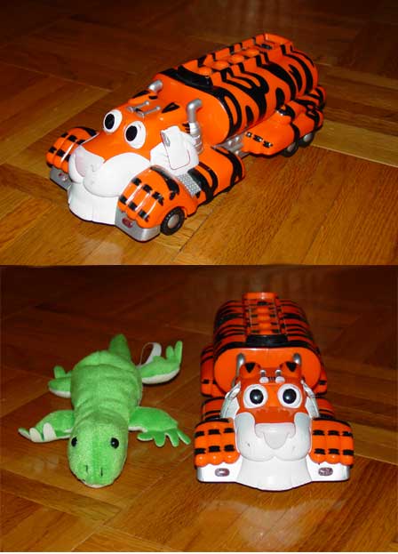 The Prowling Tiger Tanker from Exxon, introduced in 2000. With batteries it has lights and sound. The tanker is approximately 7.5" long and the colors of the familiar Exxon "Tiger in Your Tank" Tiger.