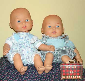 Two small size baby dolls by Unimax. Both are marked 2000 on their head and tagged 2002.